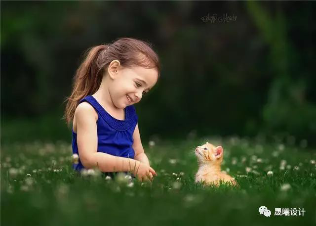 俯拍一般会带给人弱势和被动的感觉,降低摄影高度,尽量贴平孩子脸部,可增加视角的亲切感。