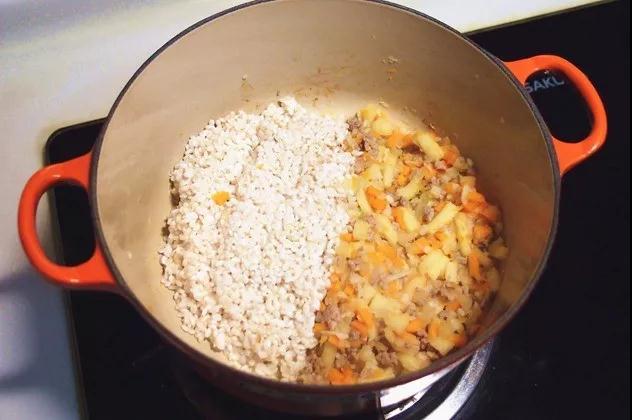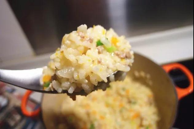 5. 加入沥干的米粒一起拌炒均匀。
