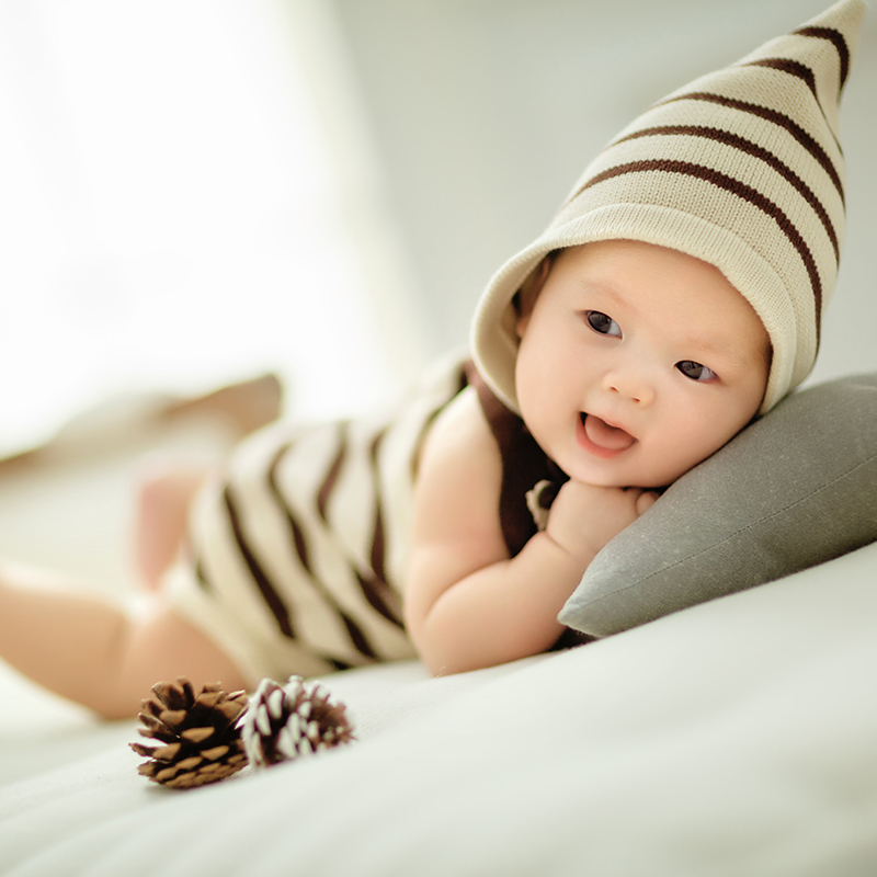 4.通常这个月开始,宝宝翻身自如,注意防摔。